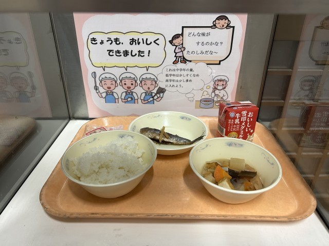 いわしのしょうが煮は、時間をかけてじっくり煮てあり、しっかり噛んで骨ごと食べている児童もいました。また、一緒に煮てあるしょうがにもしっかり味がしみ込んでおり、食缶に残ったしょうがもおかわりして食べている児童もいました。ごちそうさまでした。