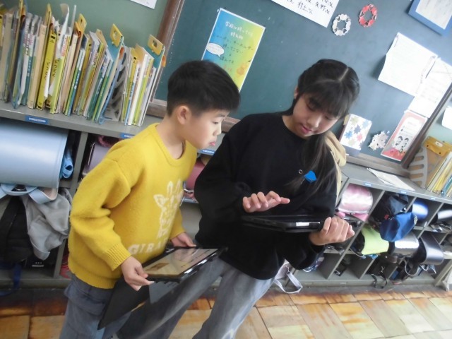 難読漢字や虫メガネクイズは、難しくてなかなか答えられず、「Hint please」とヒントをもらっている子もいました。