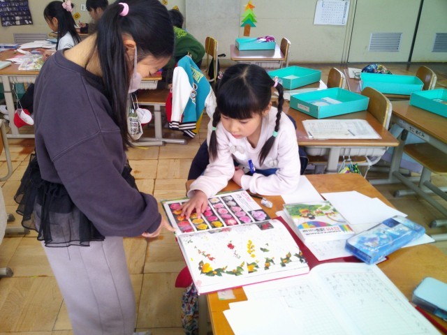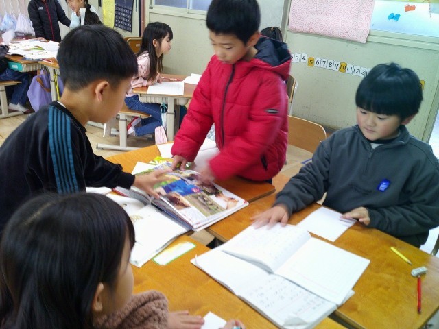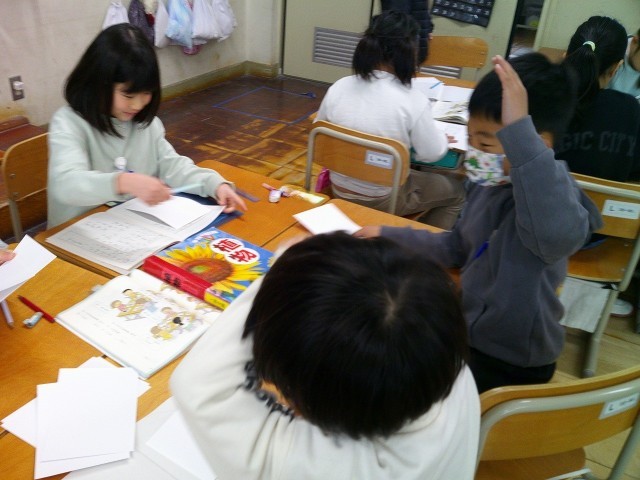 お店屋さんごっこにむけて、グループに分かれて準備をしました。くだもの、どうぶつ、花などのまとめたものを表す名前と一つ一つを表す名前が少しずつ分かってきたようで、相談しながらカード作りをしていました。図鑑を見て、ていねいに絵を描いているグループもありました。