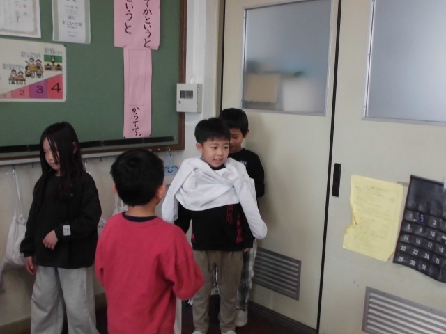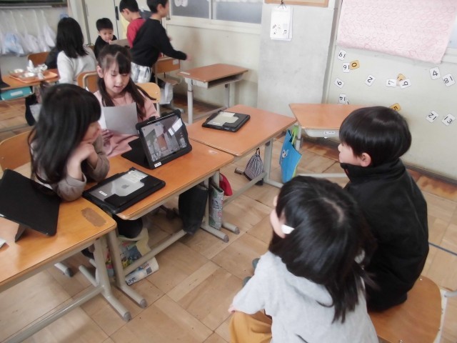 次の1年生へ上里小学校について紹介するために、たくさん準備してきました。今日は、違うグループの発表を聞きました。「もっとこうしたらいいよ!」「ここがよかったよ!」とアドバイスをし合いました。