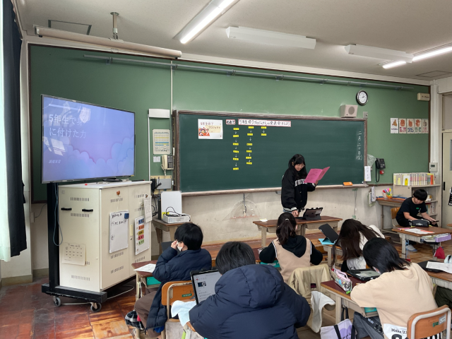 先日、5年生最後の参観日がありました。参観日では、「5年生で頑張ったこと」をまとめ、自分たちでパワーポイントを作成し発表しました。