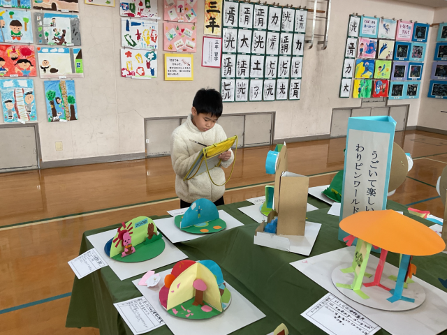作品展では、他学年の作品を鑑賞し、自分のお気に入りの作品を見つけて、作品カードに真剣に書き込んでいました。来年の作品展も楽しみですね!