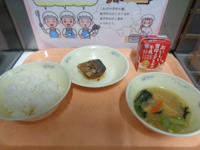 今日の給食は、「ご飯・牛乳・さばのかわり煮・厚揚げの野菜あんかけ」でした。
