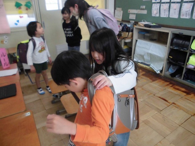 竹の子こども園の子たちへ、上里小学校について紹介しました。様々な体験コーナーがあり、小学校ではこんなことをするんだよと優しく教えてあげることができました。