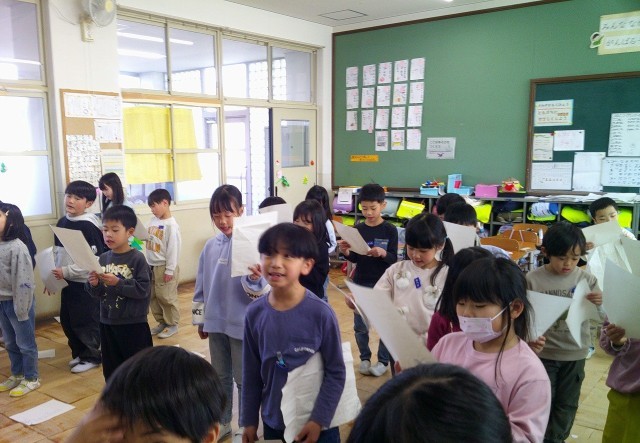 今日は、6年生へのおめでとうの飾りを作ったり、6年生を送る会の練習をしたりしました。大きな声で歌えるようになってきました。