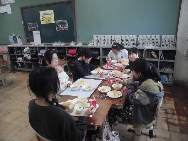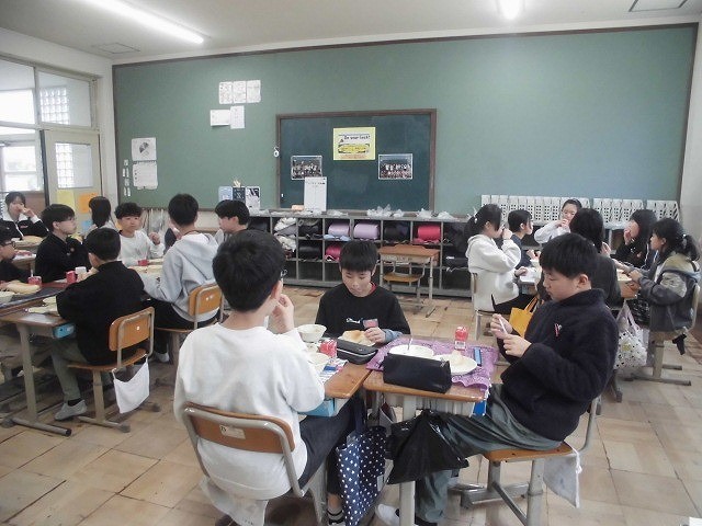 班で仲良く給食の時間を過ごしました。コロナの影響もあり、机を班の形にして給食をとる機会がほとんどなかった子どもたちですが、今日は班で向かい合い、和やかな雰囲気の中で給食の時間を過ごしました。