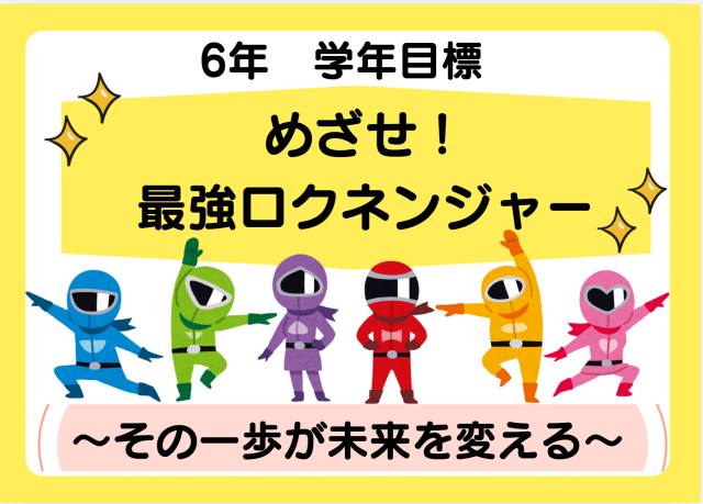 6年生の学年目標は、「めざせ! 最強ロクネンジャー ~その一歩が未来を変える~」 です。