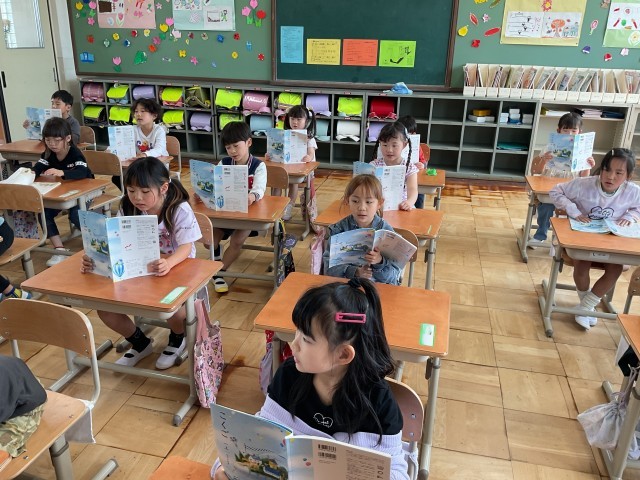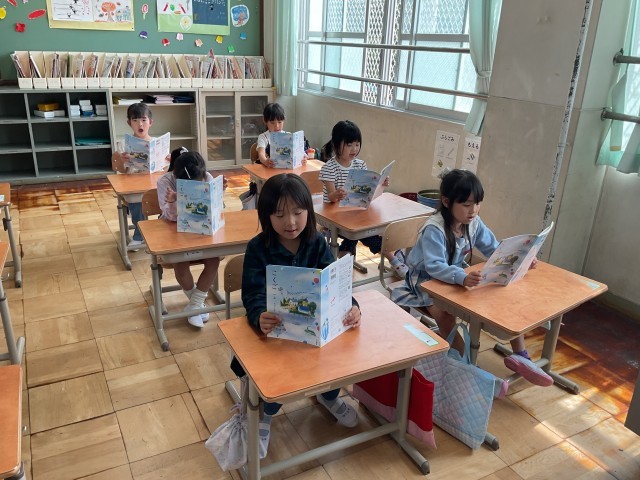 子どもたちは大きな口をあけて、はっきりと読むむことを意識しながら音読していました。
