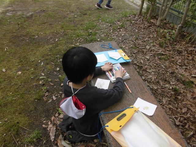 春を感じるものを小さなサイズの画用紙にいくつか描きました。