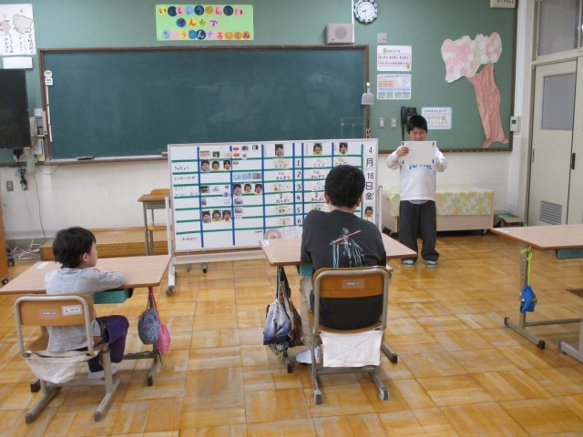 3人で朝の会です。6年生が卒業して少し寂しくなりましたが、新学年になりやる気は十分です。3人でも仲良く元気な3組です。