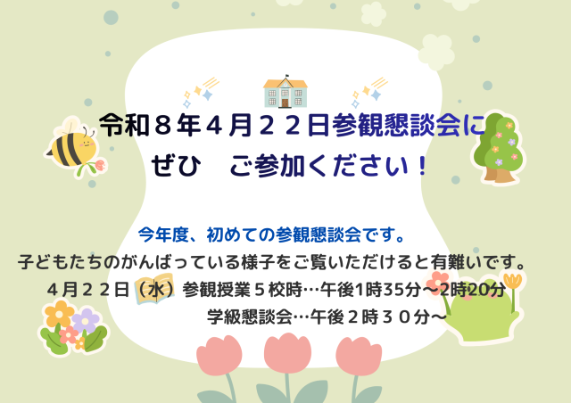 名札と上履きをご持参ください。
