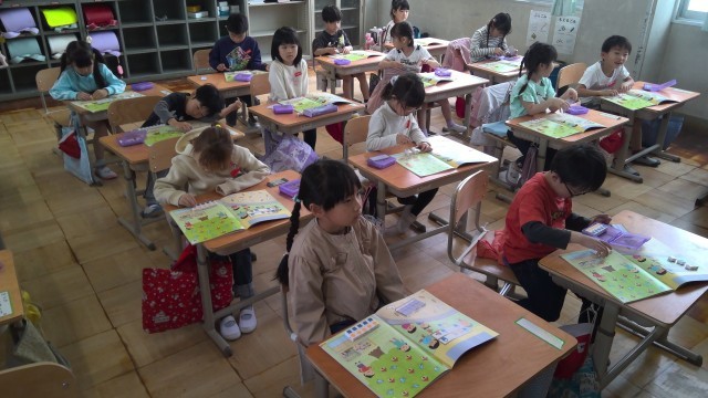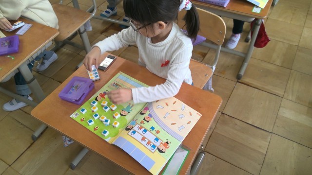 子どもたちは、1つずつ丁寧に数図ブロックを置いて数を数えていました。
