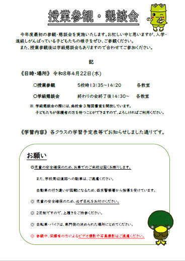 本日、令和8年度初めての参観懇談会があります。ぜひ、ご参観ください。