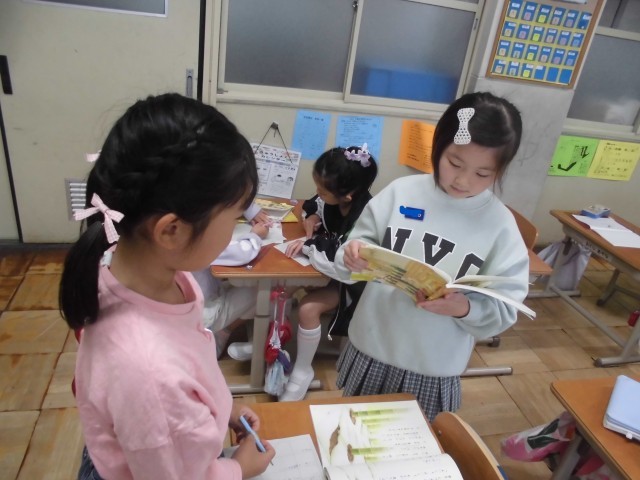 声の大きさや高さ、読む速さ、動き、表情を工夫して音読をしていました。