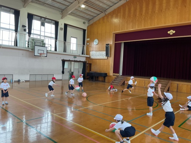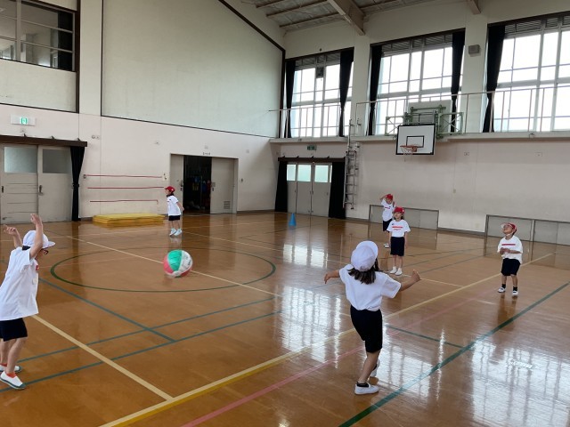 遠くまで投げるにはどうしたらいいかを考えて、下から投げたり、上から投げたり、足を出したり、ジャンプしたりして、工夫しながら体を動かしていました。