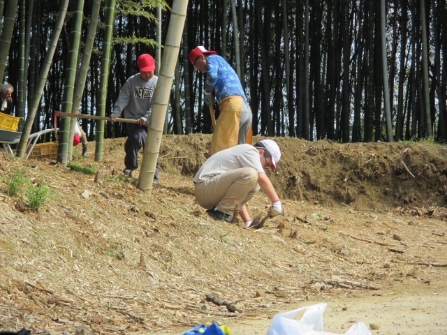 朝方は雨が少し降っていたのですが、昼からはよく晴れて暑いくらいの天気になりました。昨晩、雨だったため去年より筍が掘りやすかったです。今年は、2年生が「筍掘りデビュー」を果たしました。みんなたくさん掘ってたけのこをお土産に持って帰ることができました。