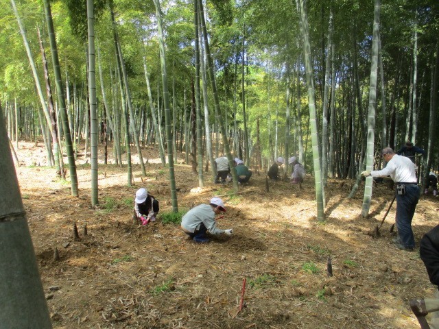 3年生と育成学級で、本日午後たけのこ掘りに行きました。