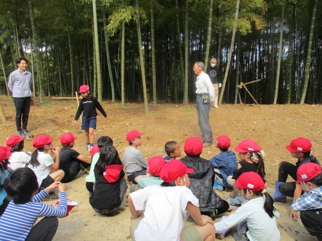 朝、雨が降っていたので心配していたのですが、みんなで行くことができました。土の中から顔を出すたけのこをたくさん見つけ、友だちと協力して掘り進める姿が見られ、子どもたちは自然の中で貴重な体験をすることができました。また、活動にあたっては洛西中央緑地管理組合の皆様にご協力いただき、たけのこの掘り方や自然との関わりについて丁寧に教えていただきました。地域の方々に支えられながら、季節を感じる学習の機会となりました。