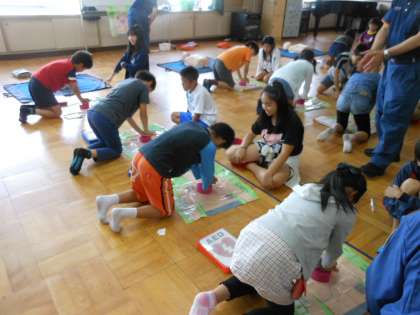 5年生は今日5時間目に救命救急講習を受けました。消防署の方に心臓マッサージのやり方を教わりました。1分間に120回程度の早さで行うことや,圧迫する強さなど実際に体験しなければわからないことでした。子どもたちは楽しみながらも,良い経験ができたかと思います。