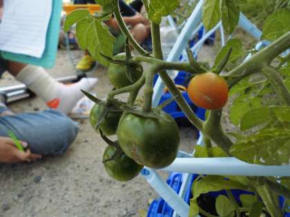 生活科でミニトマトの観察を続けていますが、ミニトマトがだいぶ大きくなってきました。ミニトマトの大きさも、もうビー玉くらいの大きさを超えているものが多く、中には少し赤く色付いているものも見られてきました。「これからぐんんぐんと育って欲しいな。」と子ども達は話していました。