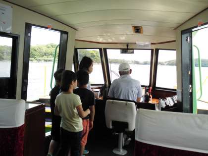 クラスの半分ずつ船の屋上デッキに乗せてもらいました。海風を浴びながら英虞湾の遊覧を楽しみました。