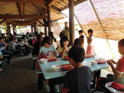 みさきの家に到着したら、まず昼食でした。芝生広場にある「東屋」でいただきました。ひと口食べるなり、