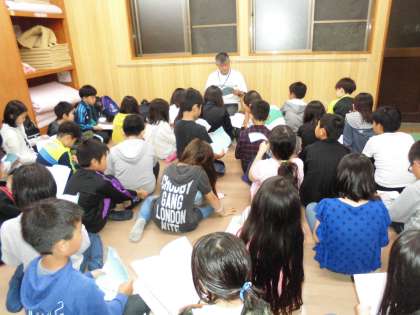 ナイトウォークから帰ってきて、バンガローで反省会をしました。