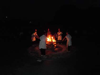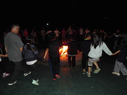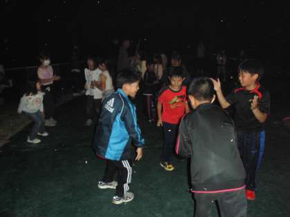 おごそかな雰囲気の中での点火で始まり、あとはいろいろなゲームで大盛り上がり。