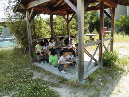 生活科では,身近な自然の継続的な観察をしています。学校の中庭でも,この前観察したときには見つけることができなかった生き物が見つけることができたり,植物も知らない間に高く伸びたりして,短い時間ですが,季節の変化に子ども達は驚いていました。