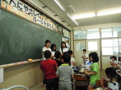 給食委員会のお兄さん・お姉さん達が,きちんと牛乳を飲み切ることができるように給食時間の終わりにみにきてくれました。子ども達は,頑張って牛乳を飲んでいました。