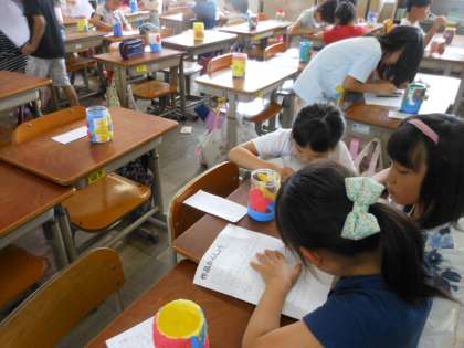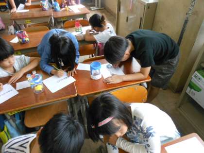 図工科で作品鑑賞をしました。友だちが頑張って作った作品の素敵なところを見つけ,ワークシートに書いていきました。最後の発表では,自分が一生懸命作ったところを友だちに褒めてもらうことで,とっても嬉しく温かい気持ちになりました。