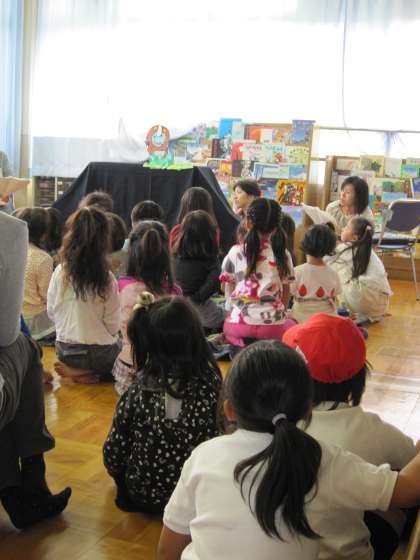 子どもたちが楽しみにしているおはなし宝石箱(絵本の読み聞かせ)がありました。今日は「とりかえっこ ちびぞう」というお話でした。ちびぞうがほかの動物としっぽなどを交換していくお話です。子どもたちは,お話に聞き入っていました。お話が終わったときに「おもしろかった。」と口々に言っていました。