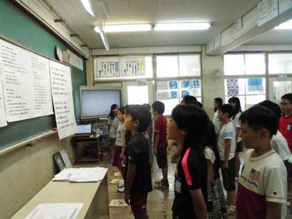 明日は普段どおり集団登校。出発式は8時40分の予定です。