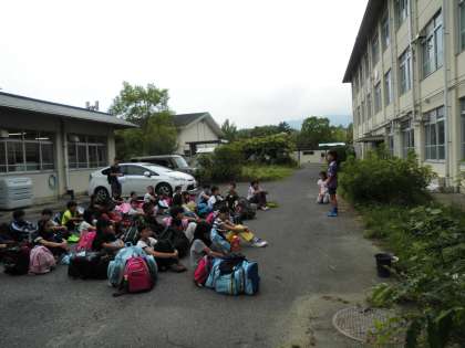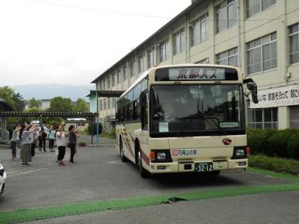 午前8時40分に「出発式」をして、貸し切りバスで花背に向かいました。台風3号の様子が心配ですが、5年生の元気で吹き飛ばしてしまいたいです。