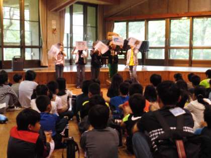 福西小学校は、班の代表のメンバー5名が得意の寸劇風に発表をしました。