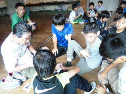 今回の登山での最大の敵は、山ビルでした。途中、何人かが犠牲になりました。山で応急処置はしましたが、山の家に帰ってきてからも、奥村先生に診てもらいました。