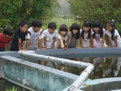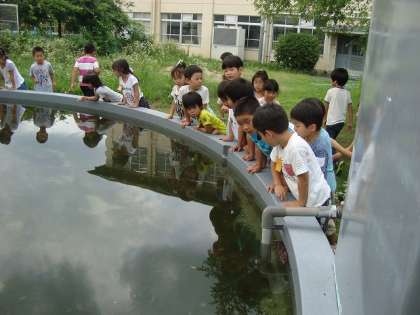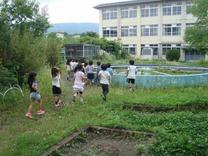 生活科の学習で,いきものを探しに中庭へたんけんに行きました。