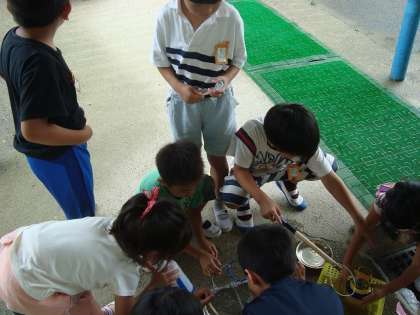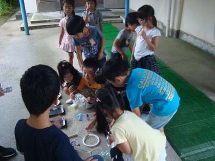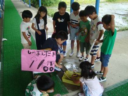 つくし学級3人の手作りシャボン玉でみんなで楽しく遊び更に仲良くなることができました。