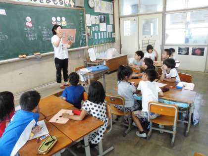 昨年度スチームコンベクションオーブンの入った福西小学校給食室等の施設見学の後,栄養教諭の薄刃先生による食の指導の様子も参観されました。