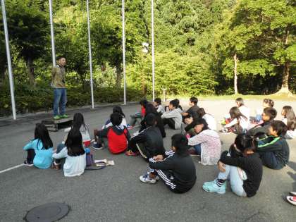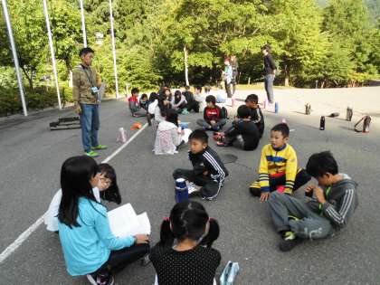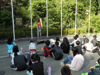 福西小学校だけで、朝のつどいをしました。前日のふりかえりの交流も、このときにやりました。