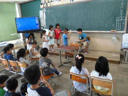 7月のお誕生日会をしました。お誕生日係からたくさんのプレゼントをもらうと,7月生まれの人は,とても喜んでいました。