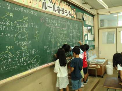 算数科の「たし算とひき算のひっ算(2)」を頑張っています。これまでのひっ算の復習をしながら,新しい課題に取り組んでいます。子ども達も一生懸命に取り組んでいます。これから難しくなっていきますので,頑張りましょう。