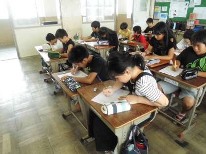 今日からお話の絵の学習が始まりました。各クラス違うお話で,それぞれが心に残った場面を絵に表します。