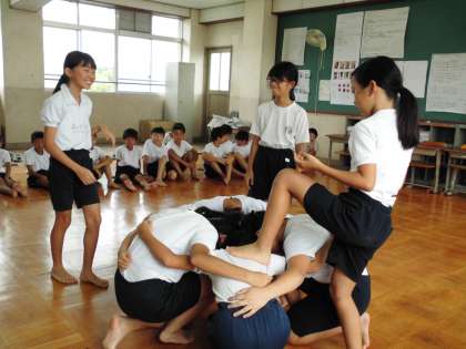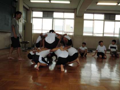 5年 教室でも組体操。