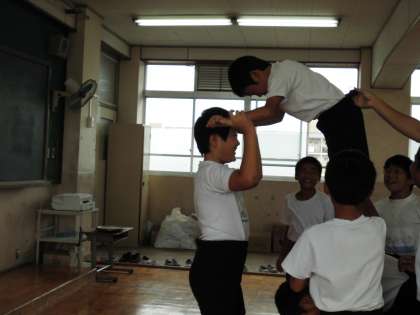 今日は5・6時間目の6年生との練習に備えて,教室で大技の確認をしました。