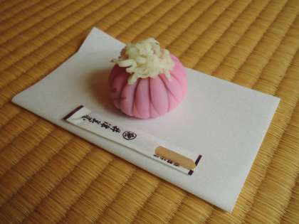 今月のお菓子は「着せ綿」。作法を学びながらお茶を楽しみました。