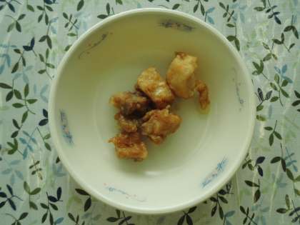 油淋鶏(ヨウリンジー)は,鶏肉のから揚げにきざんだねぎをのせて甘酢しょう油のたれをかけた料理です。給食では,白ねぎを使っています。