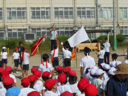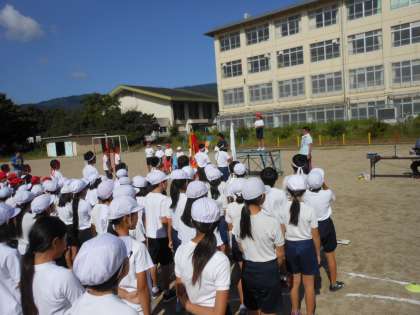 来週末の運動会に向けて,どの学年も熱心に練習に取り組んでいます。今日は全校練習として,入場行進や,全校体操,また選択競技の練習に取り組みました。良く晴れた気持ち良い天気の中,元気よく練習に取り組みました。