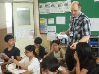 今日は久しぶりのALTの日でした。2回目の登場もいつも通りユーモアあふれるダグ先生!LESSON4の道案内をしようで方向を指示する言葉をいっぱい使いました。