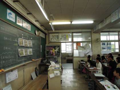 授業の最後に映像教材でスイカの農家が人工授粉している様子を見て,